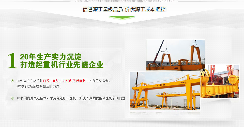 靖江市起重設(shè)備廠家直銷懸臂起重機(jī)、固定式懸臂起重機(jī)、單雙梁橋式起重機(jī)、簡易門式起重機(jī)、電動(dòng)葫蘆門式起重機(jī)型號(hào)齊全,價(jià)格合理 - 座落在美麗富饒的江浙平原,魚米之鄉(xiāng)--江蘇省靖江市,位于長江之濱。毗鄰江陰長江公路大橋, 與江陰、張家港隔江相望,緊鄰上海、南京、蘇州、無錫等發(fā)達(dá)的大中城市,經(jīng)濟(jì)環(huán)境和地理位置得天獨(dú)厚。 緊靠京滬、寧通高速公路 公路和水路交通極為便利。